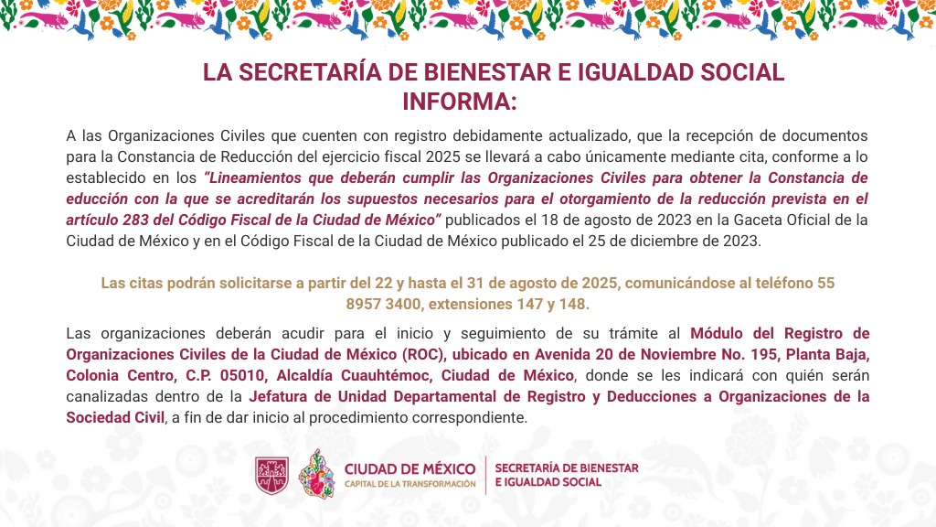 Este espacio reúne toda la información sobre el Registro de Organizaciones Civiles de la Ciudad de México (ROC) y la Constancia conforme al artículo 283 del Código Fiscal.